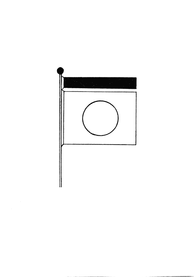 大喪中国旗ヲ掲揚スルトキハ竿球ハ黒布ヲ以テ之ヲ蔽ヒ且旗竿ノ上部ニ黒布ヲ附スヘシ其ノ図式左ノ如シ